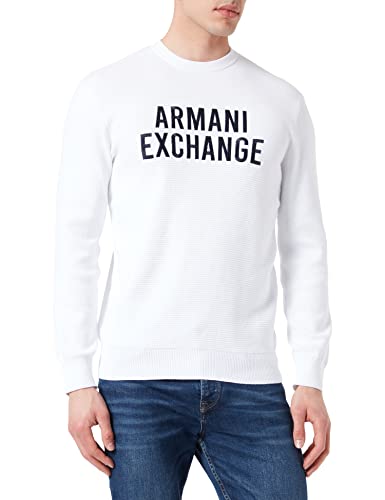 ARMANI EXCHANGE Front Extended Embroidered Logo Maglione, Bianco, XL Uomo