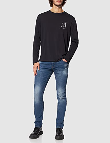 ARMANI EXCHANGE Long Sleeves, Front Print Logo, T-shirt, Uomo, Blu, M