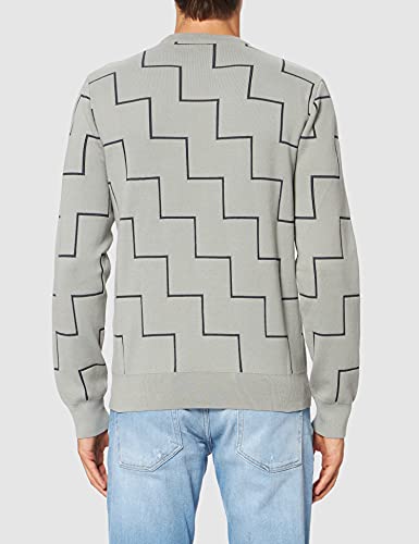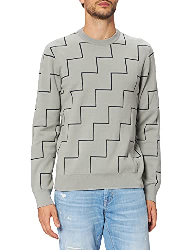 Armani Exchange Pullover con motivo geometrico, Pullover Sweater, Uomo, Grigio/Blu (Neutral Grey/Navy), XL