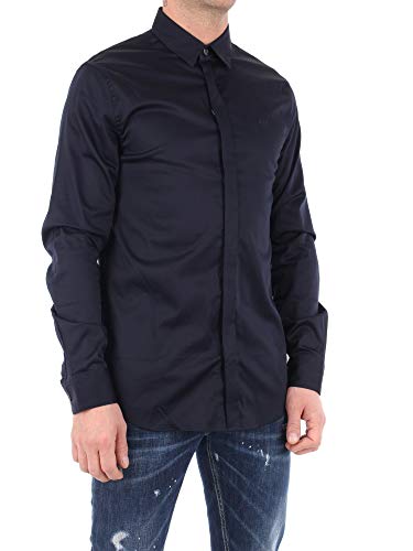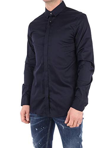 ARMANI EXCHANGE Smart Stretch Satin Camicia, Blu (Navy 1510), Medium Uomo