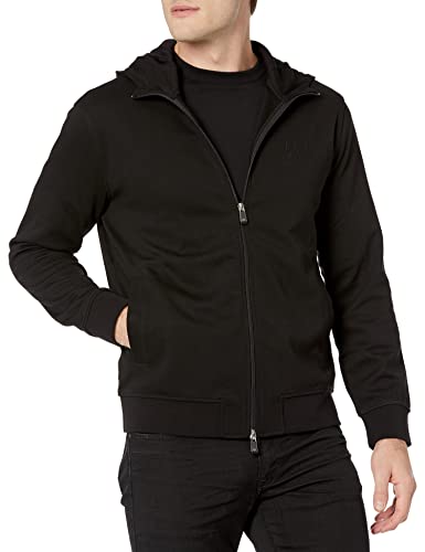 Armani Exchange with Embroidered AX Front Logo. Double Slider Zip Fastening Hooded Sweatshirt, Black, XXL
