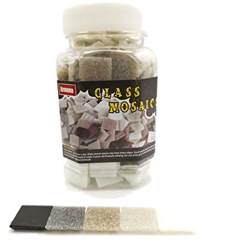 Armena Piastrelle per mosaico in vetro, 2 x 2 cm, 500 g (circa 170 pezzi), bianco/grigio/nero, 2102045001006