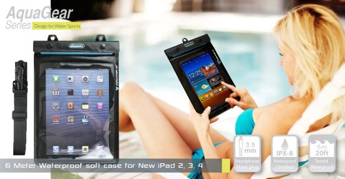 Armor-X AG-W30 Serie AquaGear Custodia Morbida Impermeabile con Cinghia Regolabile e Staccabile per Tablet, Waterproof Fino a 6 Metri di profondità, Nero