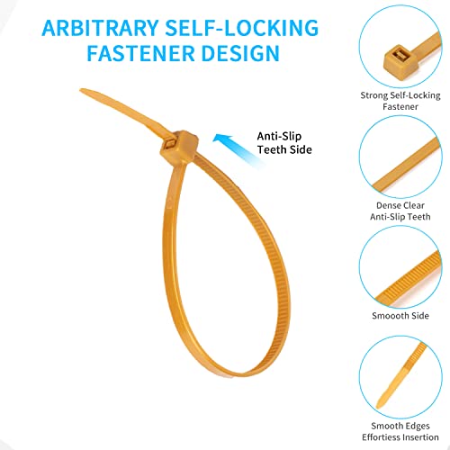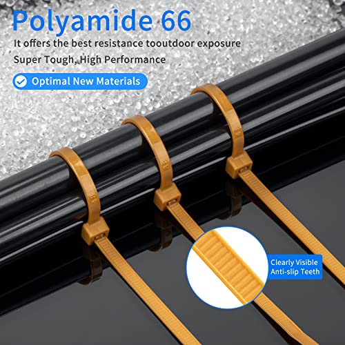 Armpow 500 fascette stringicavo da 100 mm/150 mm/200 mm/250 mm/300 mm, peso pesante, confezione autobloccanti in nylon 50LBS, perfette per casa, ufficio, giardino e officina (oro)