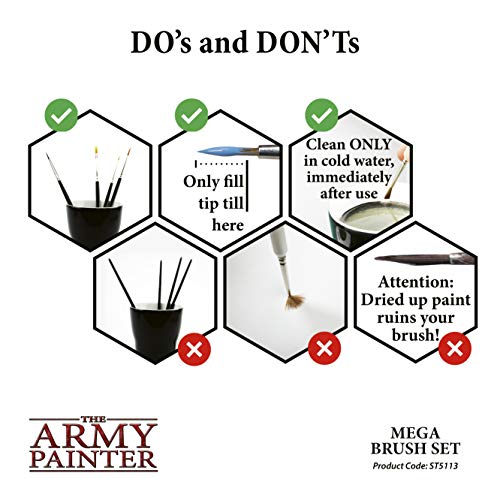 The Army Painter | Mega Brush Set | 10 pennelli in setole sintetiche e zibellino | Pennello Kolinsky Gratis | Accessori per pittura di miniature