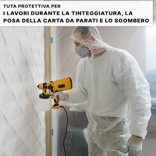 ARNOMED Tuta monouso in PP, 50x tuta bianca usa e getta, tuta di protezione L (130x171 cm), tuta protettiva monouso con cappuccio, tuta imbianchino usa e getta per uomo/donna, tuta da lavoro monouso