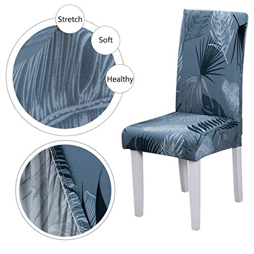 ARNTY Coprisedie con Schienale 4 Pezzi,Elastico Fodere Coprisedia per Sala da Pranzo,Decorativo Copertura Della Sedia Estensibile Fodere Copri Sedie con Schienale (Blu-Foglia d'estate, 4 Pezzi)