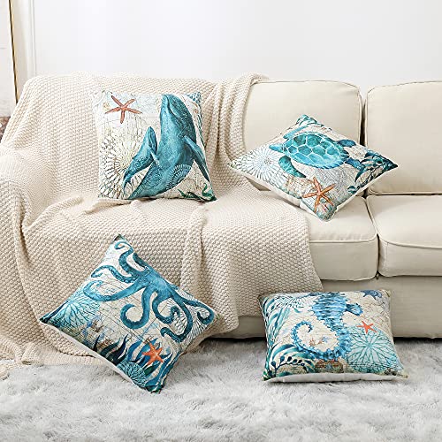ARNTY Federe Cuscini Divano 45x45, Copricuscini Divano Moderna fodere Cuscini Decorativi Set di 4 Federa per Soggiorno Sedia Divano (Animale subacqueo-Velluto)