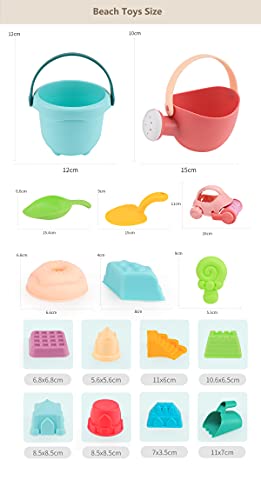 ARNTY Giochi Spiaggia, Giochi Sabbia per Bambini Giocattoli Spiaggia Bambini Giocattoli Spiaggia per Bambini in Plastica Morbida con Auto Secchio Castello Stampi e Borsa (16 Pezzi)