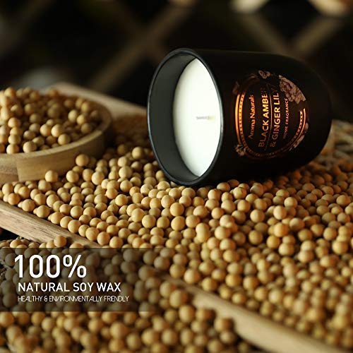 Aroma Naturals Candela profumata, 30 ore, cera di soia naturale, confezione regalo (ambra nera e giglio allo zenzero)