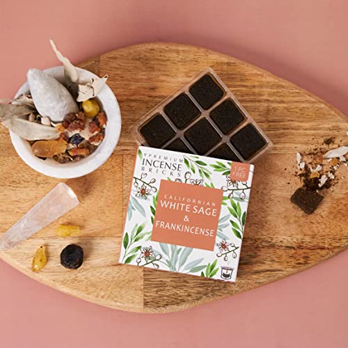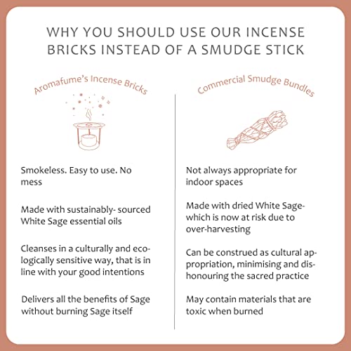 Aromafume - Incenso in mattoni di salvia e incenso bianco (2 x 9 mattoni) con bruciatore esotico a fiocco di neve, posizione risonata, mattoni di incenso a basso fumo e non tossici