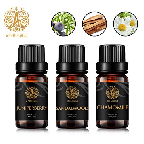 Aromaterapia bacche di ginepro olio essenziale Set per diffusore, 3X10ml 100% puro sandalo olio Kit per umidificatore-camomilla, bacche di ginepro, sandalo olio Set, Aromaterapia Camomilla Oli Kit