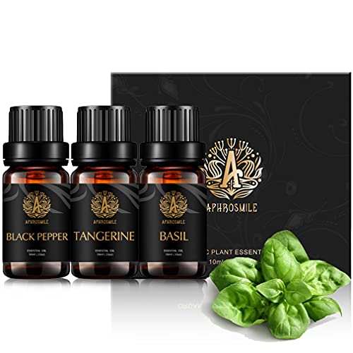 Aromaterapia Tangerine Olio Essenziale Set per diffusore, 3X10ml 100% Pure basilico olio essenziale Kit per umidificatore-mandarino,basilico, pepe nero olio essenziale Set, Aromaterapia pepe nero Oli
