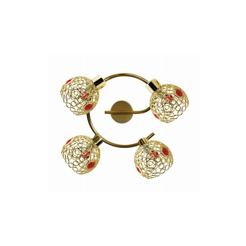 Materiale: paralume in metallo con cristalli, base in metallo Colore base: oro, cristallo rosso Altezza: 17 Larghezza: 44 Profondità: 9,5 Dimensioni (altezza/larghezza/profondità): 17x44x9,5 Peso (netto): 0,92 LED integrato: No Numero luci sorgenti: 4 Sorgente luminosa inclusa: No Numero di sorgenti x albero: 4xG9