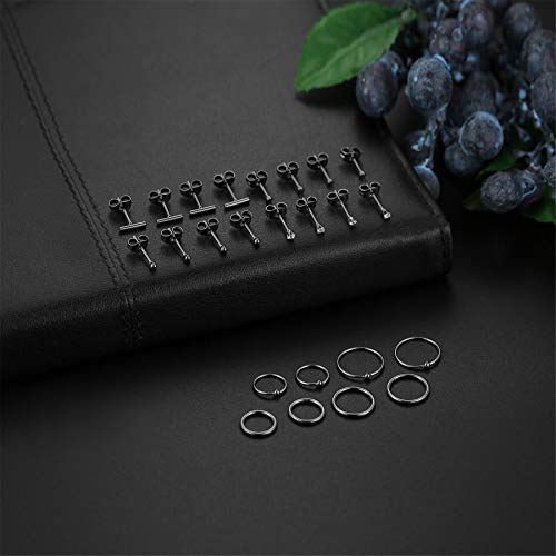 Aroncent 24 orecchini a perno in acciaio inox 316, con zirconi, per naso, colore: Nero, cod. AR084018