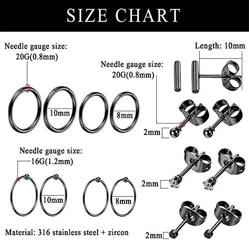 CZ & sfera: 2 mm, lunghezza barretta: 10 mm, orecchini con sfera: 16 G = 1,2 mm, diametro interno: 8/10 mm, orecchino: 20 G = 0,8 mm, diametro interno: 8/10 mm