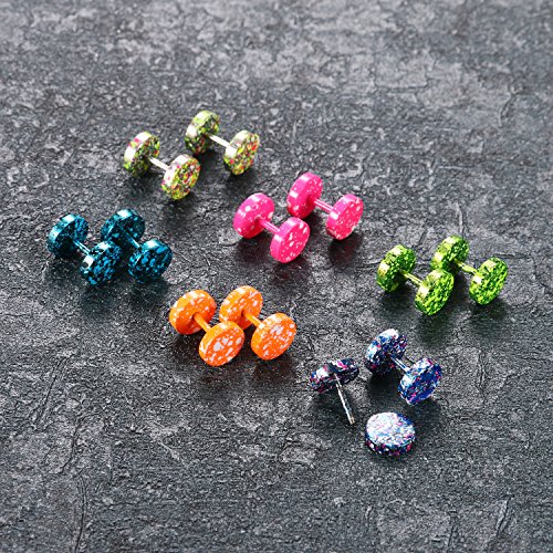 Aroncent 12 orecchini a vite colorati da 8 mm in acciaio inox finto cheater orecchio barbell bar spine calibro sguardo illusione tunnel