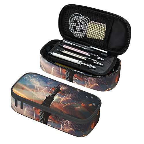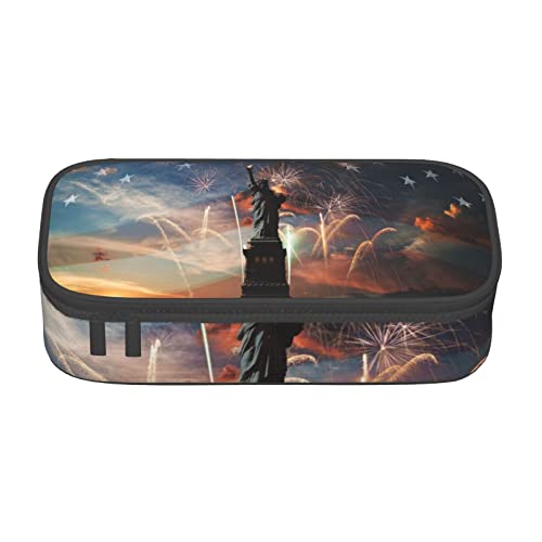 L'astuccio per cancelleria è realizzato in resistente tessuto Oxford (poliestere), motivo con statua della libertà stampato, grande capacità, multifunzione, resistente ai graffi e all'usura, molto adatto per un uso a lungo termine
