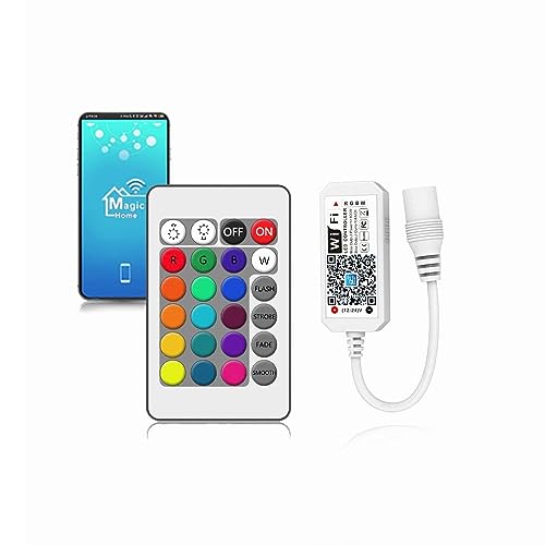 【Compatibile con Alexa Echo】 Controllabile a voce con Alexa (via WIFI). accetta comandi come "accendi/spegni, cambia colore, attenua/illumina la luce, adatto per strisce LED 5Pin RGBW 3528&5050.