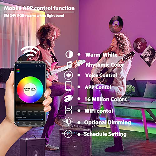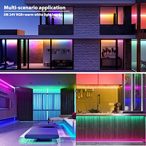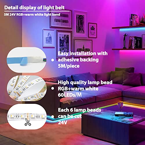 Arotelicht 24V RGBW WIFI StrisciaLED Kit Strisce 5050 SMD RGB+Bianco Caldo 4 in 1 con WLAN Smart Controller, Compatibile con Alexa, Google Home Striscia LED Decorazione per Casa, Festa, Bar.