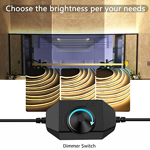 【Luminosità dimmerabile】 La confezione contiene un alimentatore 12V e un dimmer. Non è necessario acquistare altri accessori, puoi usarli subito. La luce di COB Lichtstreifens è forte e brillante Con il dimmer è possibile impostare la striscia luminosa sulla luminosità desiderata o spegnere la luce.