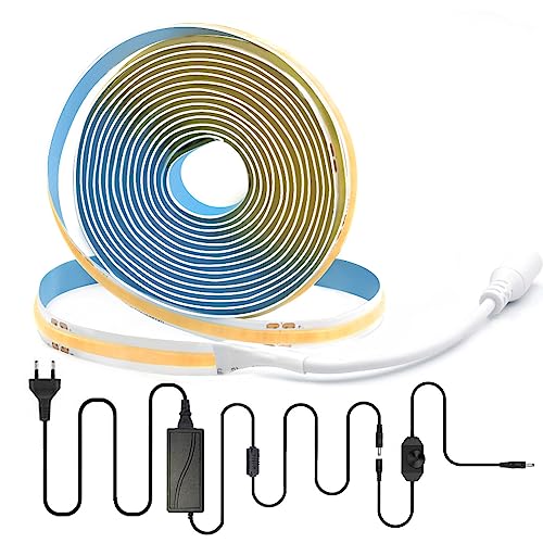 Arotelicht Striscia LED COB 12V 3m bianco caldo 3000K, Strisce LED Con dimmer e adattatore alta densità 320LED/m Nastri LED dimmerabile IP20 per TV Camera da letto Cucina Decorazione d'interni