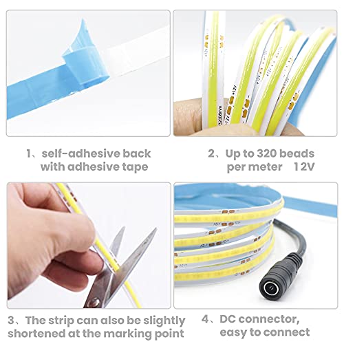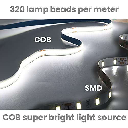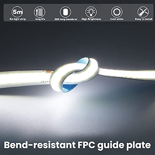 【Illuminazione più brillante】 Le strisce luminose COB possono fornire una luce bianca fredda più luminosa e uniforme rispetto alle strisce LED SMD. La striscia LED COB è continuamente luminosa, confortevole e morbida.