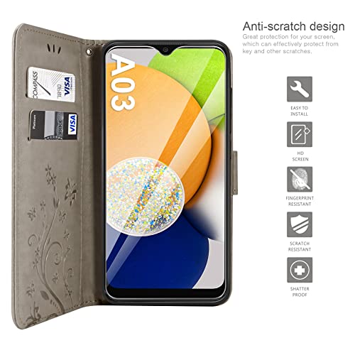 AROYI Cover Compatibile con Samsung Galaxy A03 e Vetro Temperato, Retro Design Flip Caso in PU Pelle Premium Portafoglio Slot per Schede Chiusura Magnetica Custodia Grigio