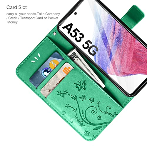 AROYI Cover Compatibile con Samsung Galaxy A53 5G e Vetro Temperato, Retro Design Flip Caso in PU Pelle Premium Portafoglio Slot per Schede Chiusura Magnetica Custodia Verde