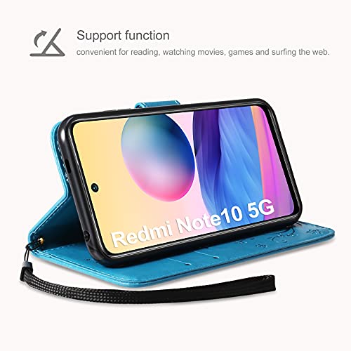 AROYI Cover Compatibile con Xiaomi Redmi Note 10 5G/Poco M3 PRO, Retro Design Flip Caso in PU Pelle Premium Portafoglio Slot per Schede Chiusura Magnetica Custodia Blu