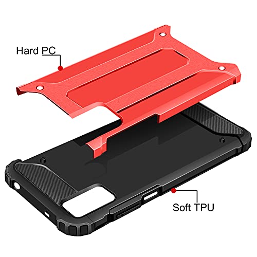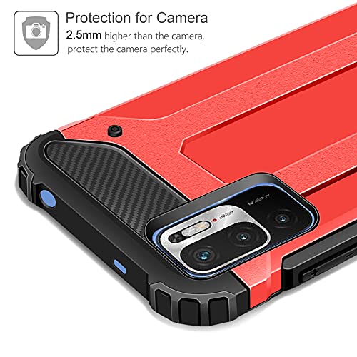 AROYI Cover Compatibile per Xiaomi Redmi Note 10 5G / Xiaomi Poco M3 PRO 5G con Vetro Temperato, Custodia Robusto Silicone TPU e PC Cassa Ibrido Doppio Strato Protective Case, Rosso