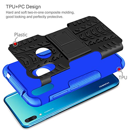 AROYI Cover Huawei Y7 2019 /Y7 PRO 2019 /Y7 Prime 2019 + Pellicola Protettiva, 2 in 1 Nuovo Armour Stile Resistente Hybrid Dual Layer Armatura Defender PC+TPU Custodie per Huawei Y7 PRO 2019 Blu