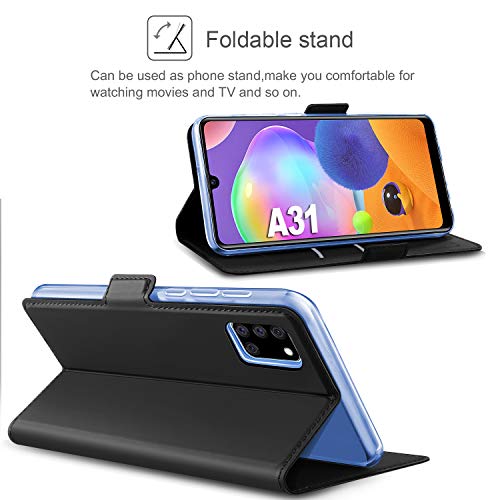 AROYI Cover Samsung Galaxy A31 Nero+HD Pellicola Protettiva,Custodia Flip Portafoglio in PU Pelle Libro con Slot Schede Pieghevole 360 Protettiva Silicone TPU Bumper Caso per Samsung Galaxy A31