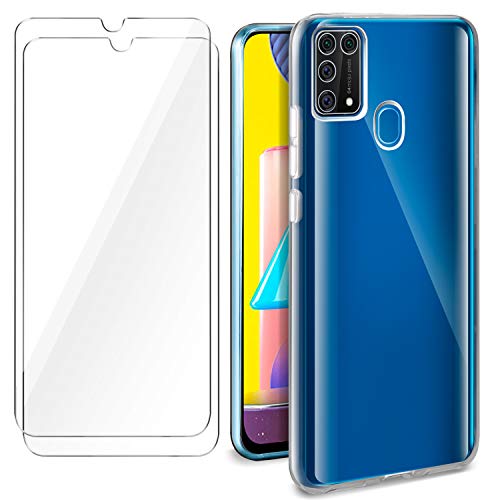 AROYI Cover Samsung Galaxy M31&[2 Pack] Pellicola in Vetro Temperato,Custodia Samsung Galaxy M31 Silicone Trasparente Full Body Protettiva Flessibile Bumper TPU Sottile Caso per Samsung Galaxy M31