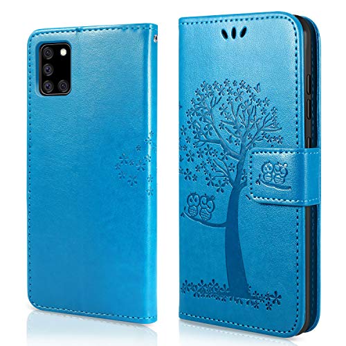 AROYI Cover Samsung Galaxy A31 + Pellicola Protettiva, Galaxy A31 Pieghevole Supporto PU Flip Cover Magnetica Slot per schede di Protezione per Samsung Galaxy A31 - Blu