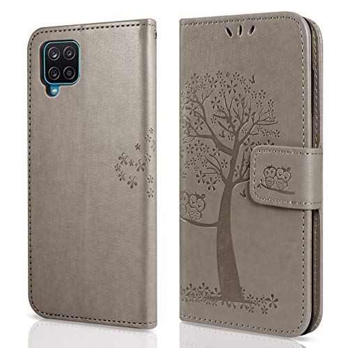 AROYI Cover Samsung Galaxy A12 + Pellicola Protettiva, Galaxy A12 Pieghevole Supporto PU Flip Cover Magnetica Slot per schede di Protezione per Samsung Galaxy A12 (Grigio)