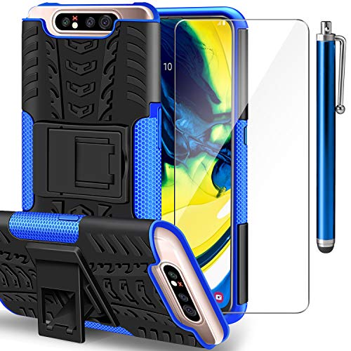 AROYI Cover Samsung Galaxy A80 + Pellicola Protettiva, 2 in 1 Nuovo Armour Stile Resistente Hybrid Dual Layer Armatura Defender PC + TPU Custodie per Samsung Galaxy A80 Blu