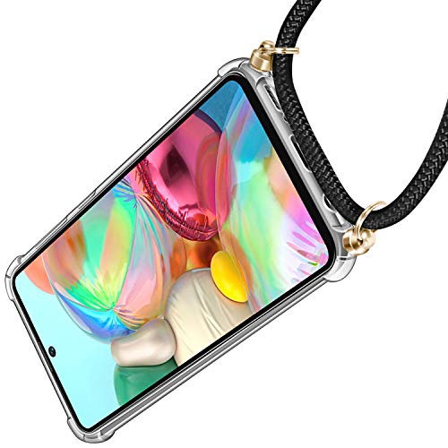 AROYI Cover Samsung Galaxy A71 + 2 x Vetro Temperato, Custodia con Cordino Ultra Sottile Trasparente Morbido Silicone TPU Bumper Shock Absorption Corner Cushion Protettiva Case per Samsung Galaxy A71