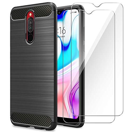 AROYI Cover Xiaomi Redmi 8&[2 Pack] Protettiva in Vetro Temperato Redmi 8,Custodia Xiaomi Redmi 8A Silicone TPU Case Shock-Absorption Bumper e Anti-Scratch Back per Xiaomi Redmi 8/ Redmi 8A-Nero