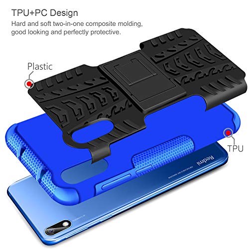 AROYI Cover Xiaomi Redmi 7A + Pellicola Protettiva, 2 in 1 Nuovo Armour Stile Resistente Hybrid Dual Layer Armatura Defender PC + TPU Custodie per Xiaomi Redmi 7A Blu