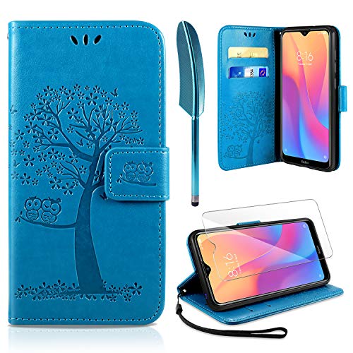 AROYI Cover Xiaomi Redmi 8A + Pellicola Protettiva, Redmi 8A Sottile Elegante Pieghevole Supporto PU Flip Cover Magnetica Slot per schede di Protezione per Xiaomi Redmi 8A - Blu