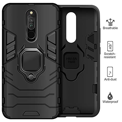 AROYI Custodia Xiaomi Redmi 8A / Xiaomi Redmi 8 Cover Silicone & Pellicola Protettiva in Vetro Temperato, Ibrida Custodia Robusta per Armature Rigida Doppia Antiurto Cover per Xiaomi Redmi 8A - Nero