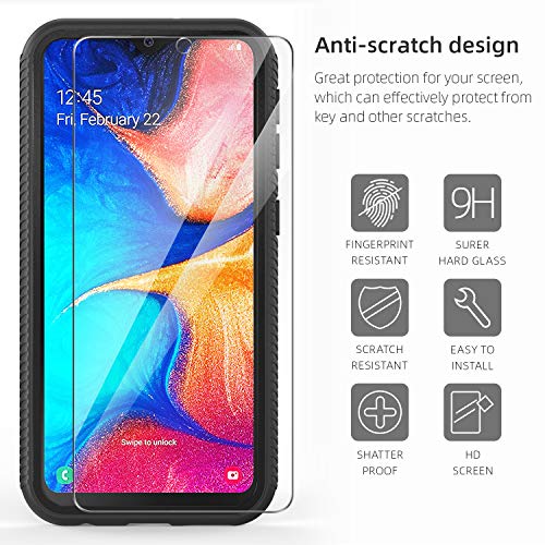 AROYI Samsung Galaxy A50 Cover, [2 Pezzi] Pellicola Vetro Temperato Custodia Posteriore Trasparente PC+ Silicone TPU Telaio Ibrida Resistente Rugged Protezione Case per Samsung A50 Nero