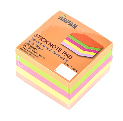 Arpan appunto appiccicoso note neon blocco pad 76 x 76 mm fogli come (assortiti - da 500 fogli)