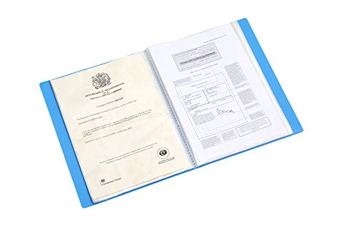Arpan, cartella portadocumenti con copertina flessibile e 62 tasche trasparenti in formato A4 per un totale di 124 facciate, colore blu