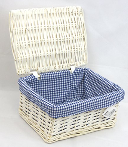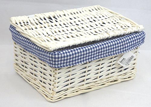 Arpan - Cesto contenitore in vimini con rivestimento in percalle blu, dotato di coperchio, misura media