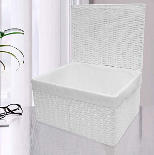 ARPAN Cesto Natalizio Intrecciata, con Fodera in Tessuto, Corda di Carta Bianca, Small-W26xD19xH11cm