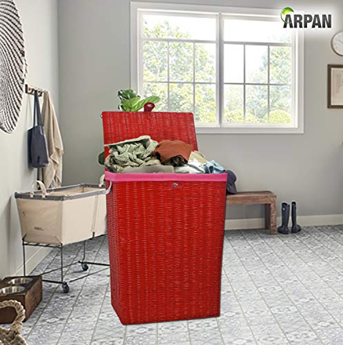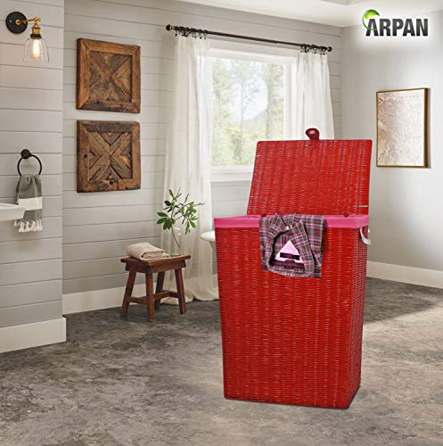 Arpan - Cesto portabiancheria con rivestimento in tessuto bianco, misura grande, motivo farfalle e foglie, colore: viola