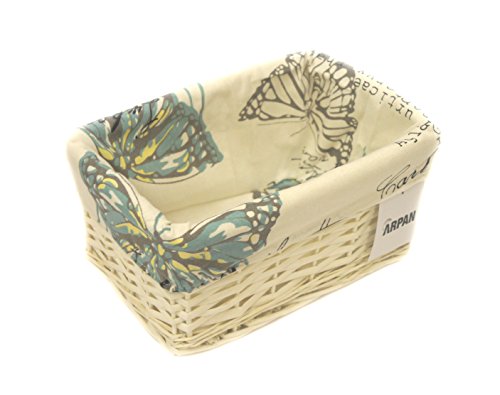 Arpan Set of 3 Rectangular White Willow Wicker Hamper Storage Basket With Cloth Lining - Vintage Butterfly