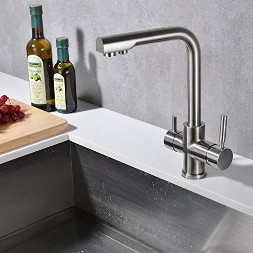 Arputhy 3 Vie Rubinetto Miscelatore Cucina con Filtro Rubinetti da Lavello Cucina Monocomando Ottone 360 Gradi Rotazione per Acqua Potabile per Acqua Calda e Fredda Nichel Spazzolato